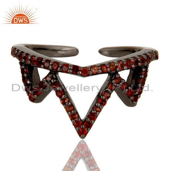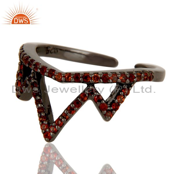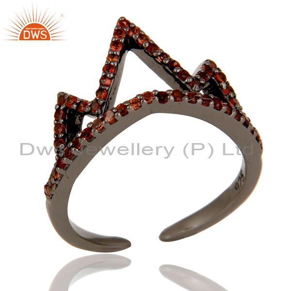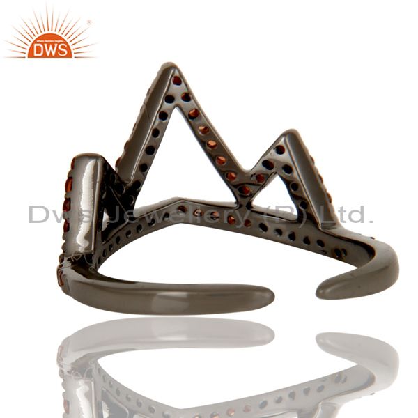 Garnet Sterling Silver Black Oxidized Crown Design Midi Ring