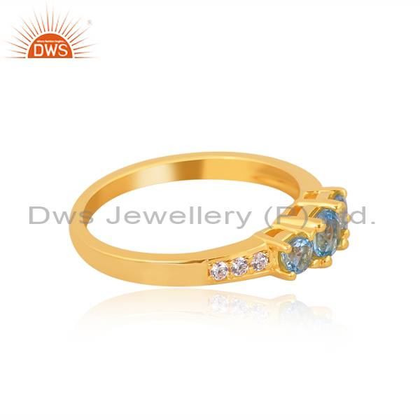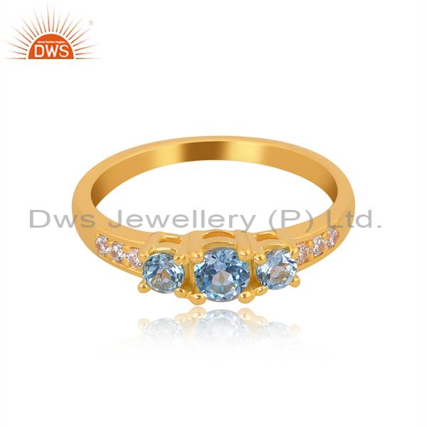 Gemstone Blue Topaz And Cubic Zirconia Gold Vermeil Ring