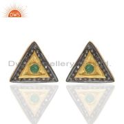 Genuine Emerald Gemstone 925 Sterling Silver Pave Diamond 18K Gold Plated Ring