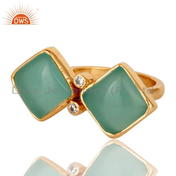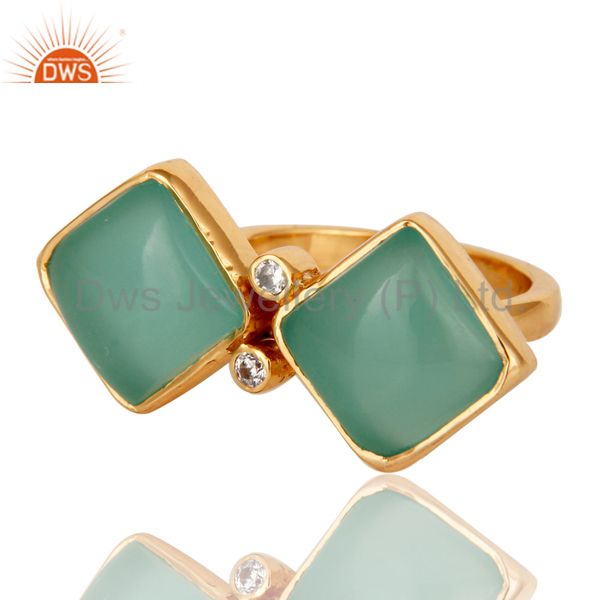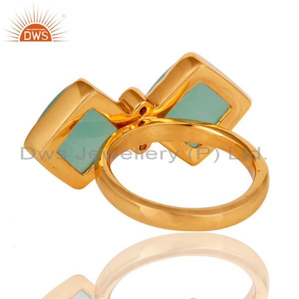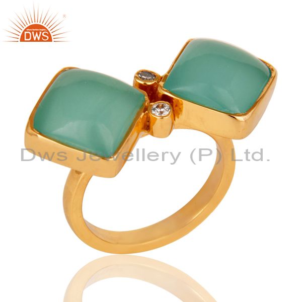 Glass Aqua and Zircon 18K Gold Plated Fashion Ring