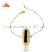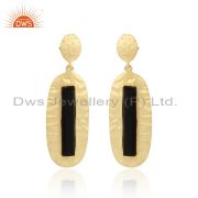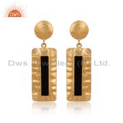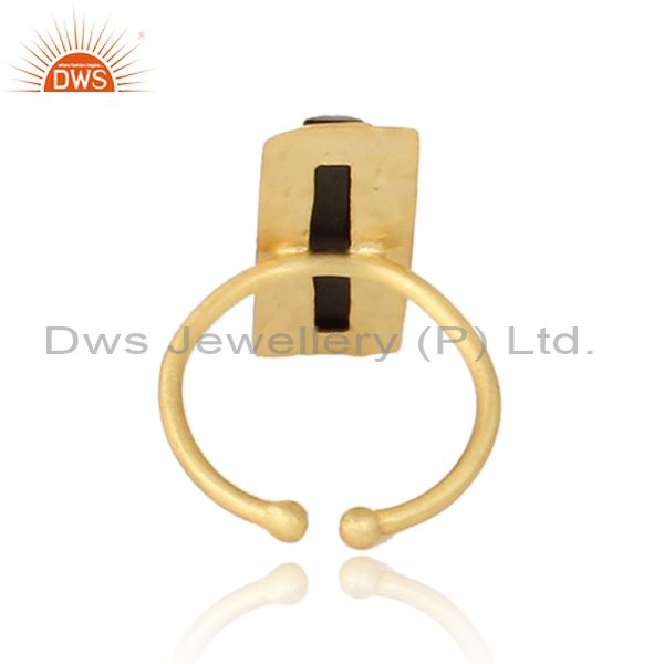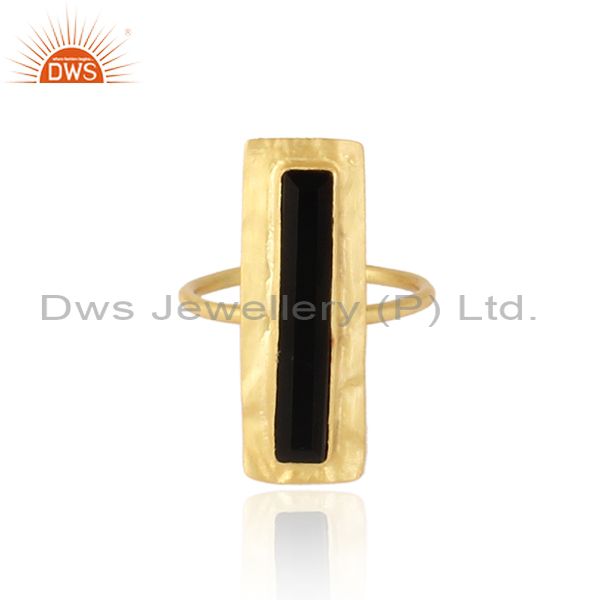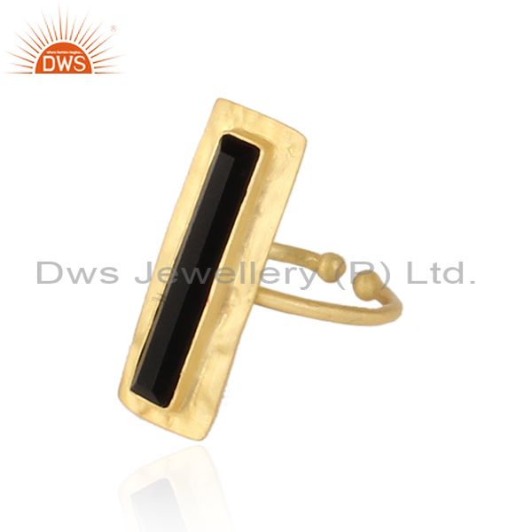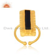 Glazed Brik Gold Plated Silver Natural Black Onyx Gemstone Rings