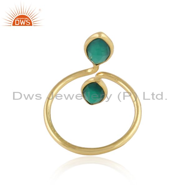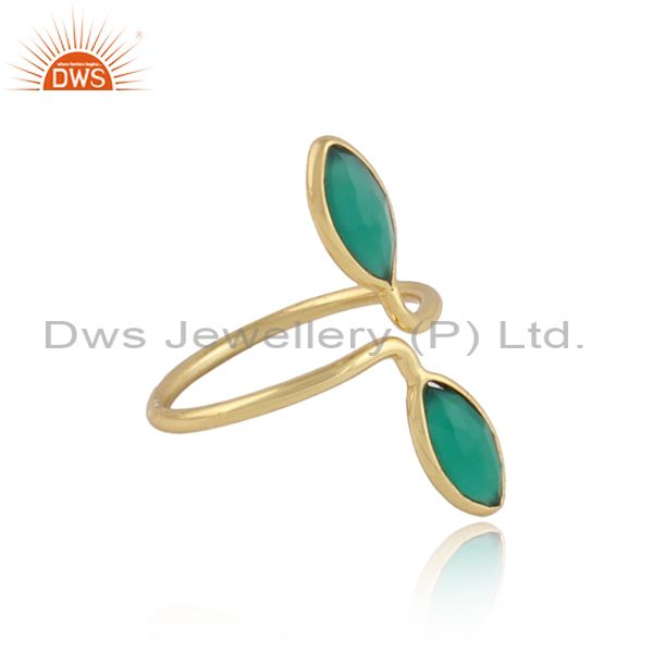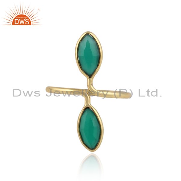 Glossy Yellow Gold Plated 925 Silver Green Onyx Gemstone Rings