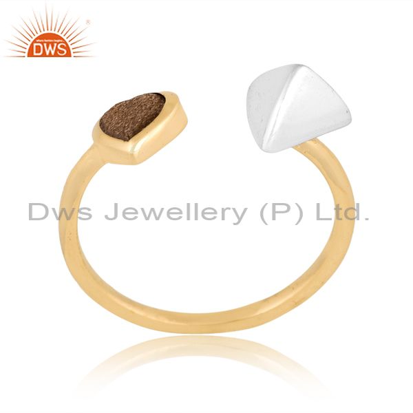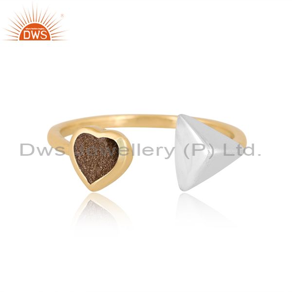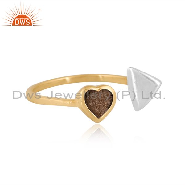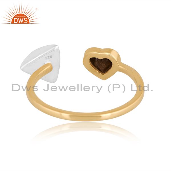God Sheen Obsidian Cut Heart Brass Gold And White Ring
