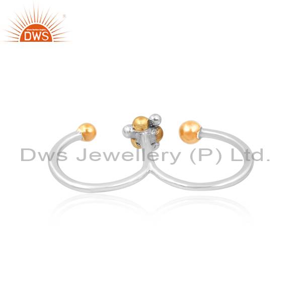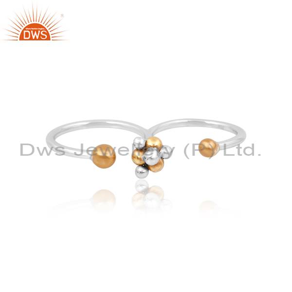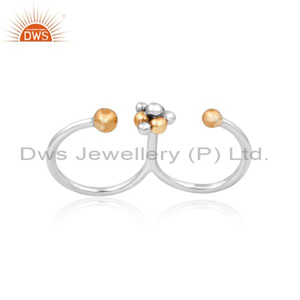 Gold & White Silver Two Finger Ring: Elegant & Modern Design