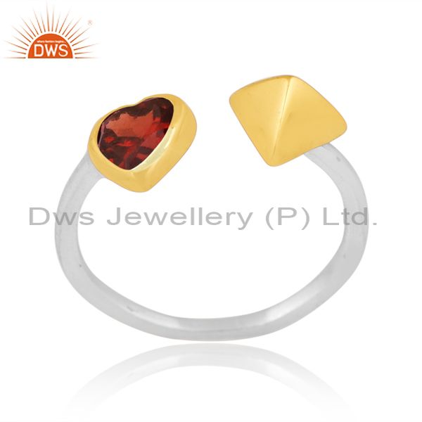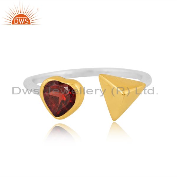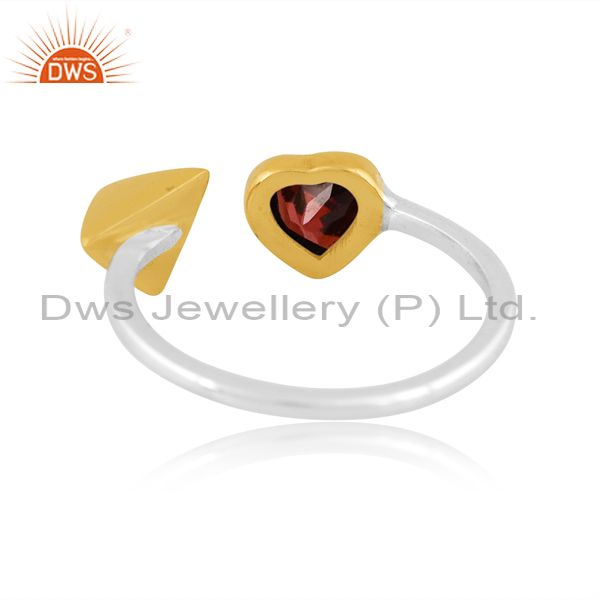 Gold & White Sterling Silver Ring With Garnet Cut Heart