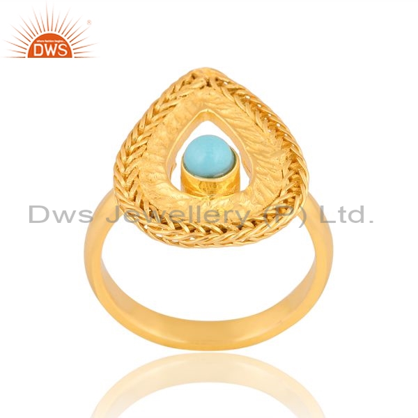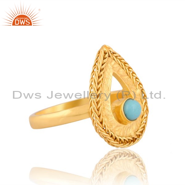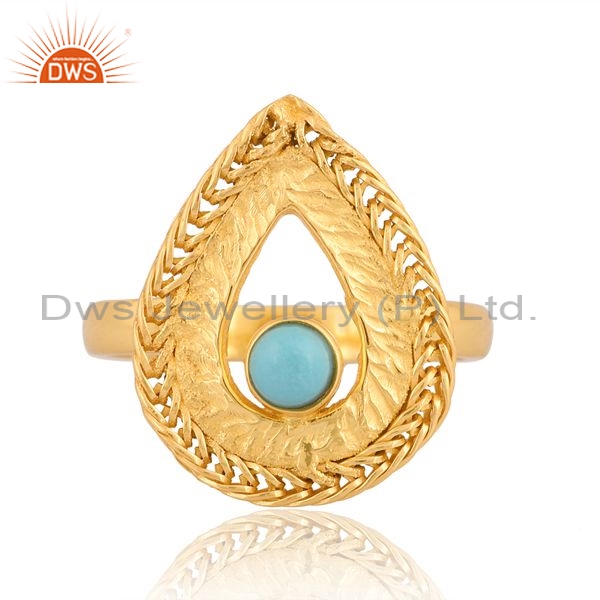 Gold 18K Pear Ring With Arizona Turquoise Babushan Stone