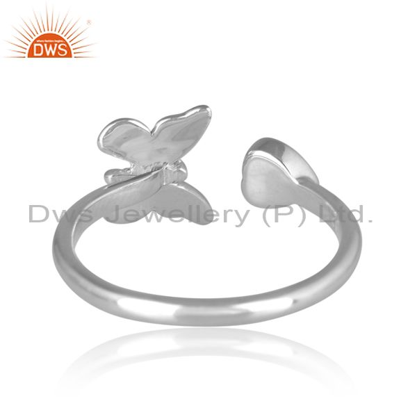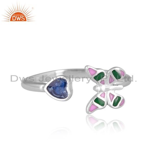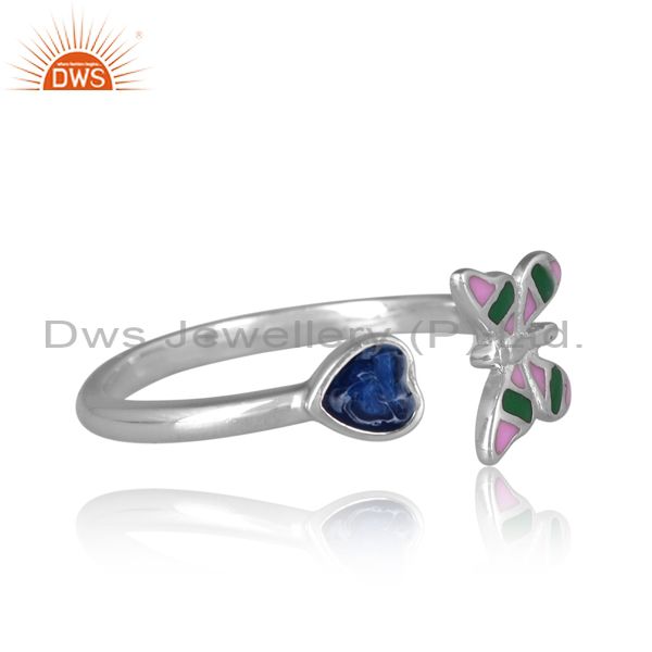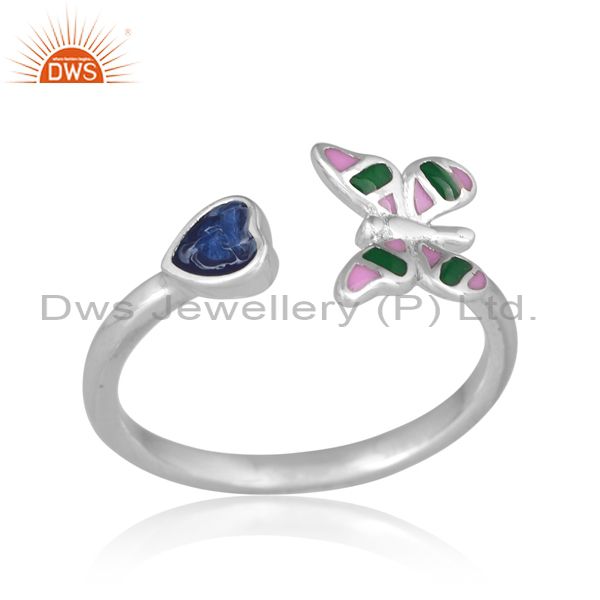 Gold On 925 Silver Butterfly And Heart Charm Enamel Ring