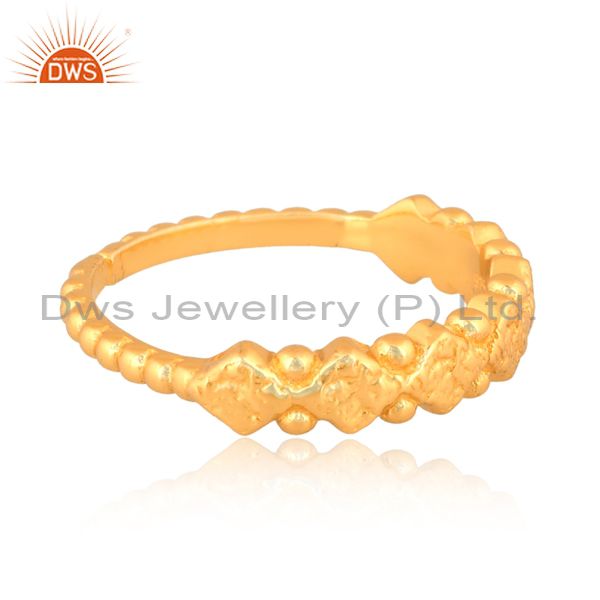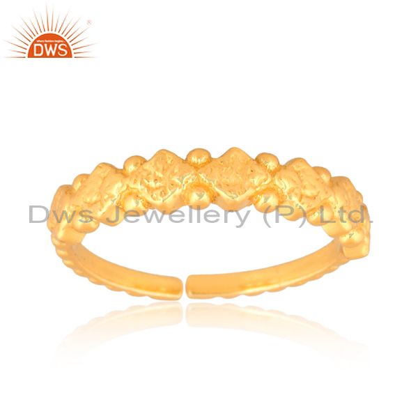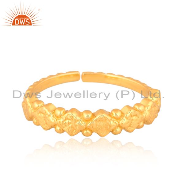 Gold On 925 Sterling Silver Ethnic Patterned Adjustable Ring