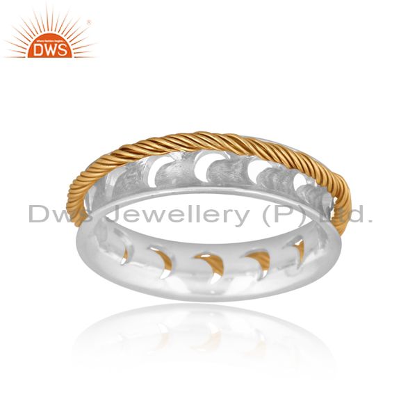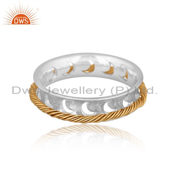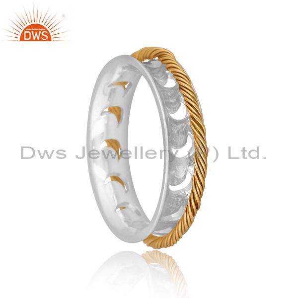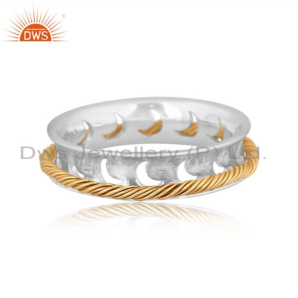 Gold On 925 Sterling Silver Handmade Crown Pattern Band Ring