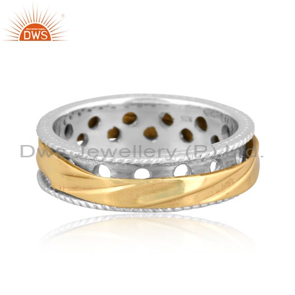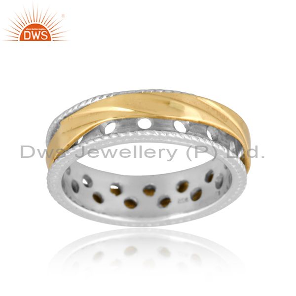 Gold On 925 Sterling Silver Handmade Impressed Band Ring