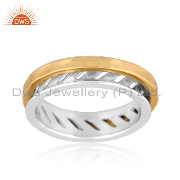 Gold On 925 Sterling Silver Impressed Band Designer Ring