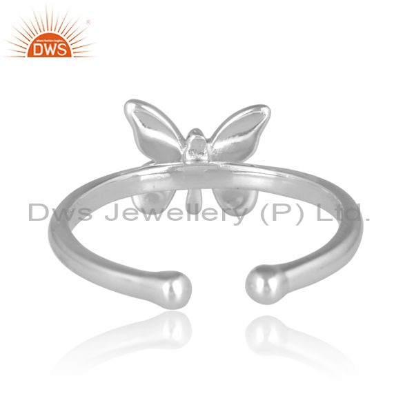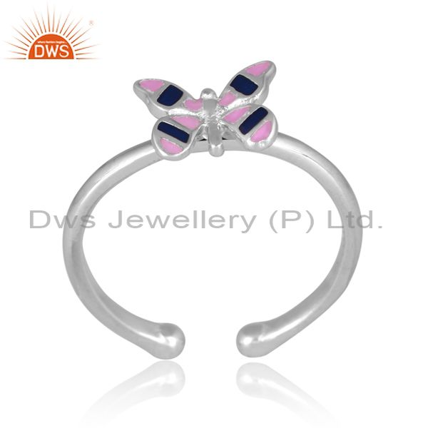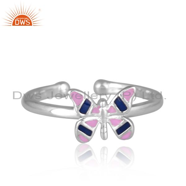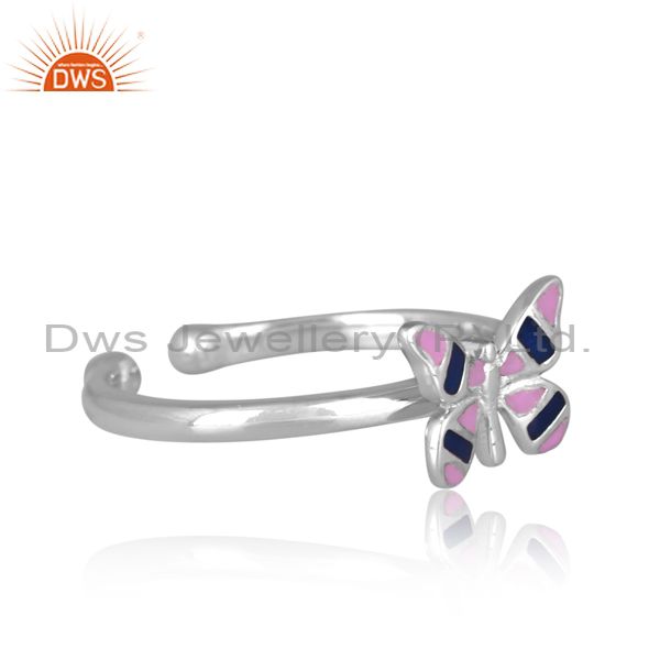 Gold On 925 Sterling Silver Pink Enamel Butterfly Fancy Ring