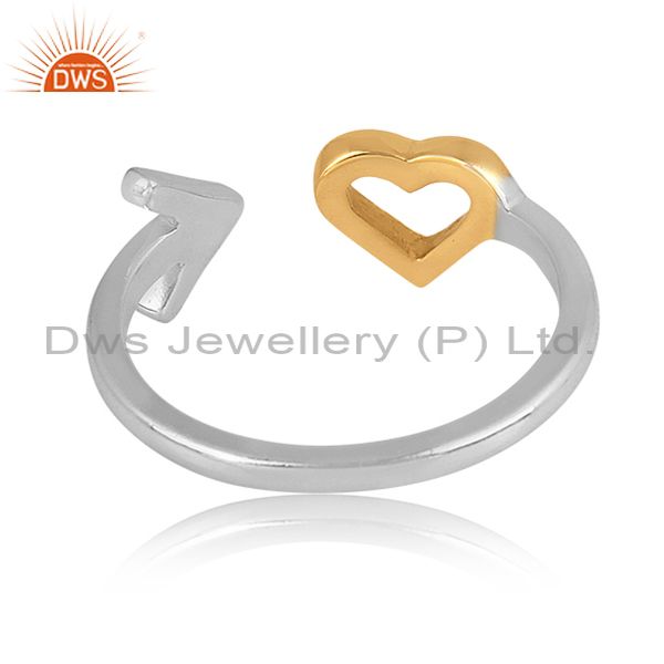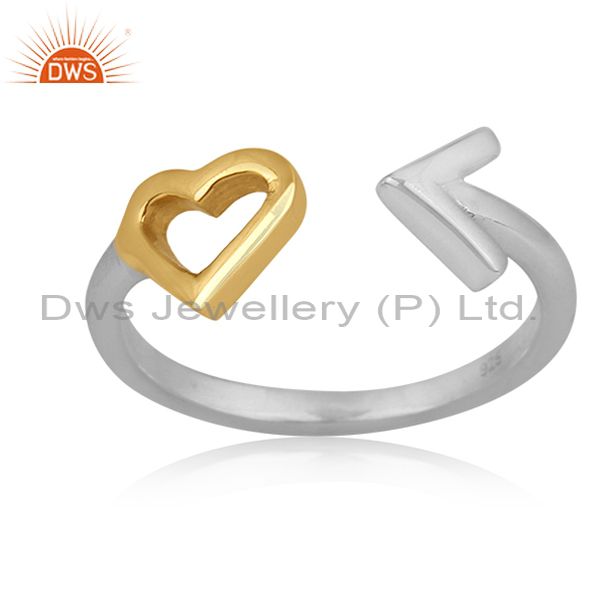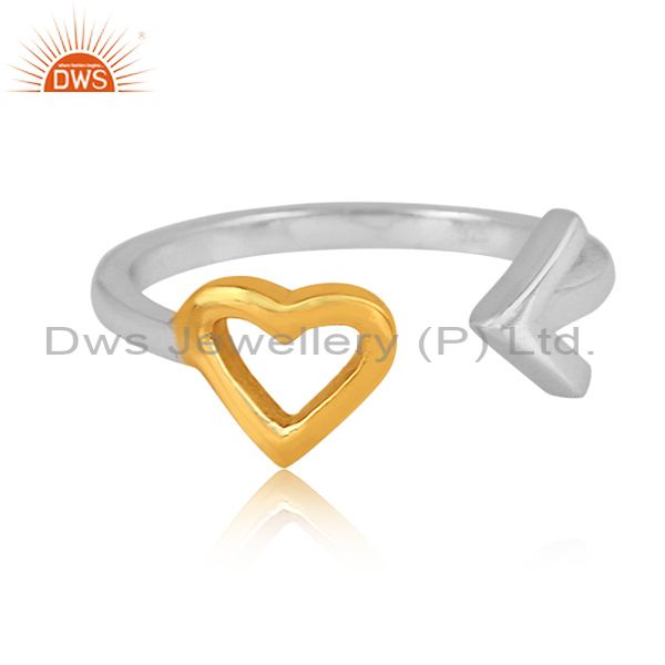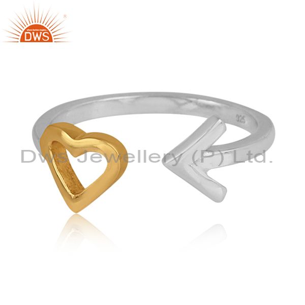 Gold On Fine 925 Silver Heart And Arrow Design Open Ring