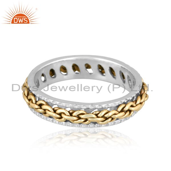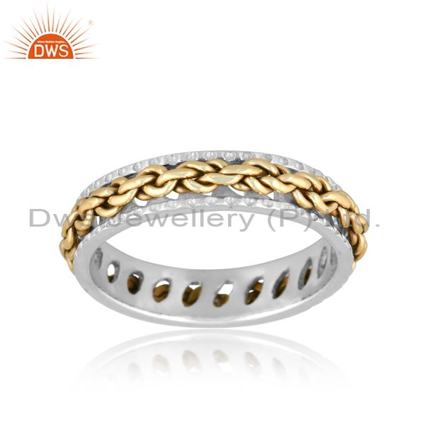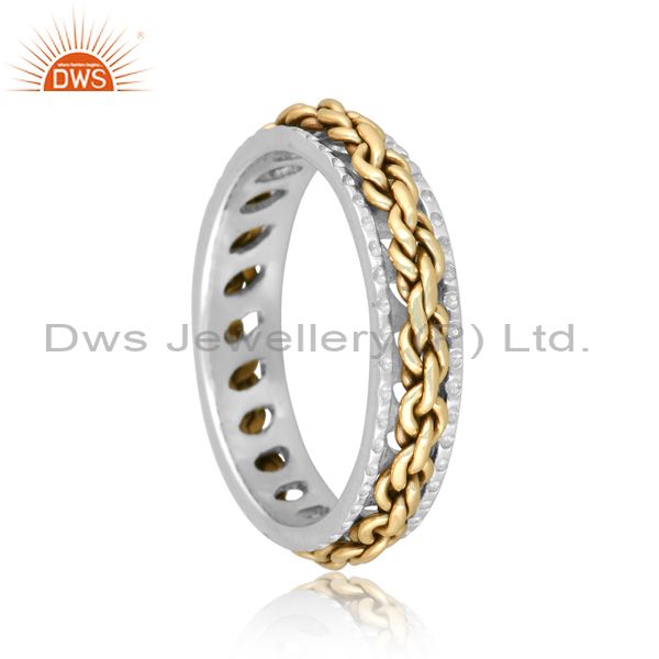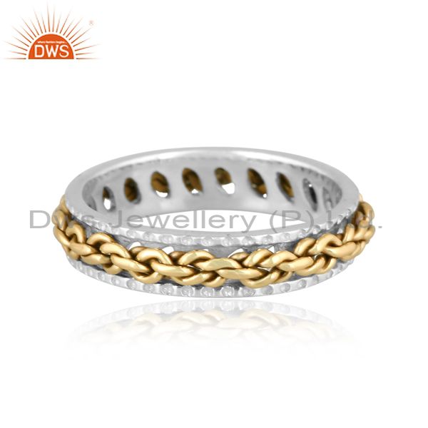 Gold On Fine 925 Silver Impressed Chain Pattern Band Ring