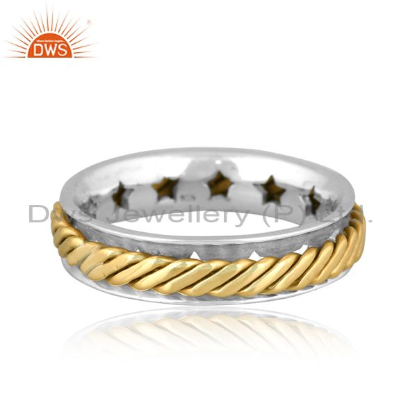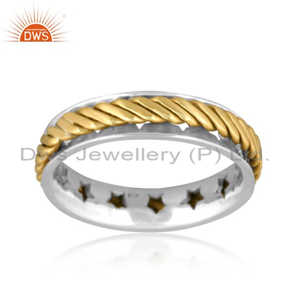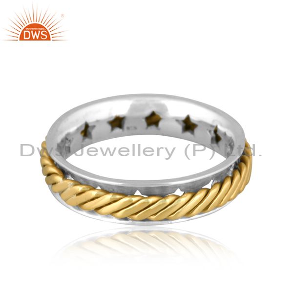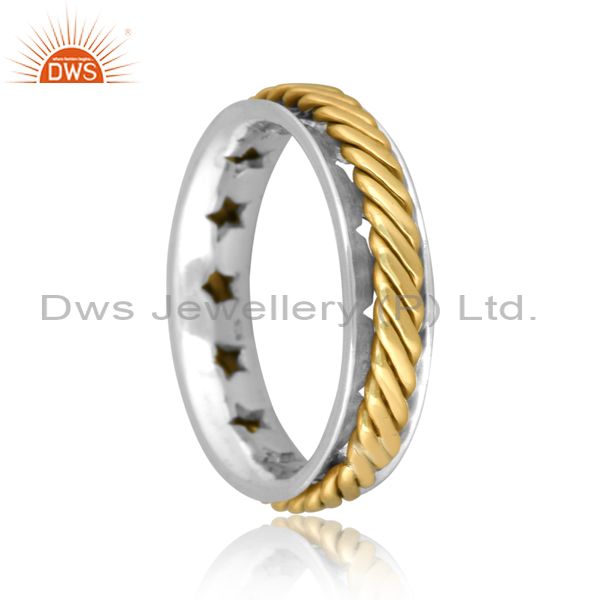 Gold On Fine 925 Silver Impressed Hollow Star Band Ring