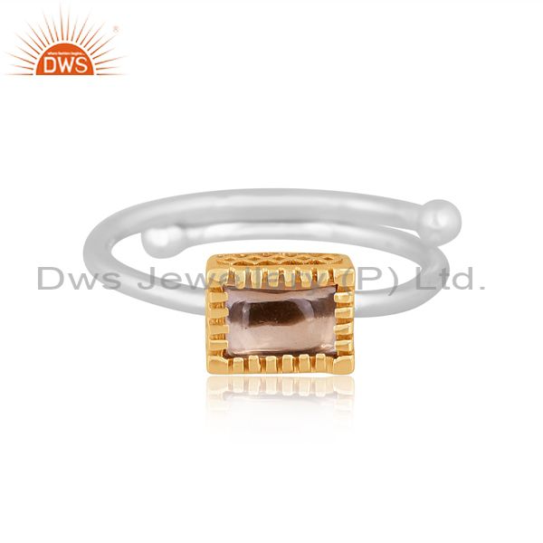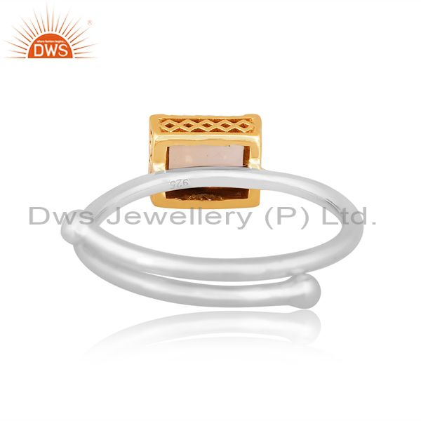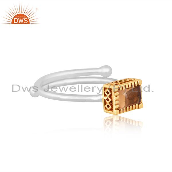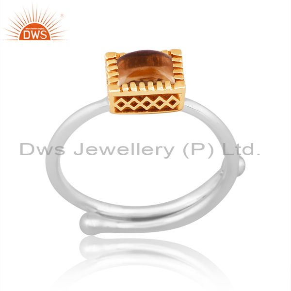 Gold On Fine 925 Silver Square Cut Citrine Set Classic Ring