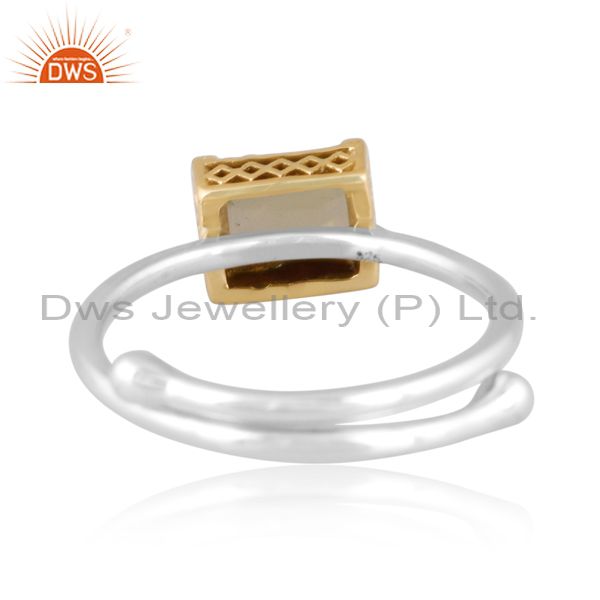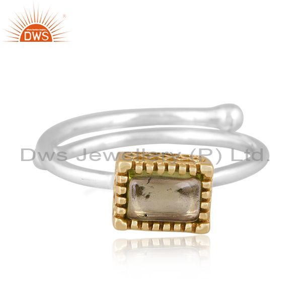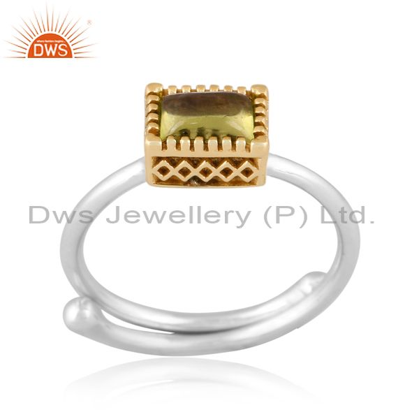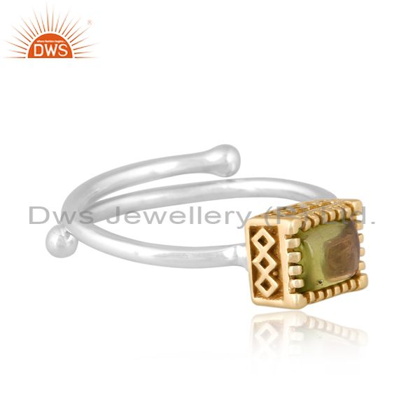 Gold On Fine 925 Silver Square Cut Peridot Set Classic Ring
