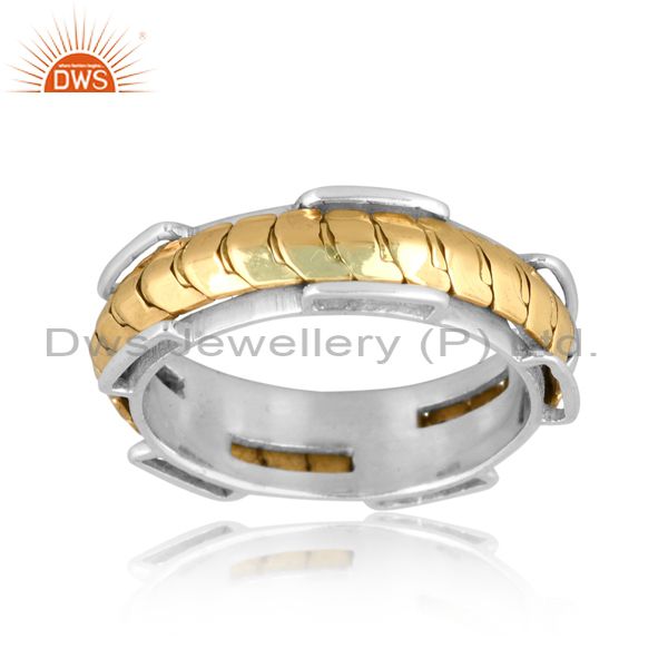 Gold On Fine 925 Sterling Silver Double Band Textured Ring