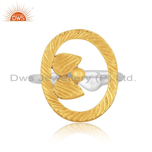 Gold On Fine 925 Sterling Silver Handmade Abstract Ring