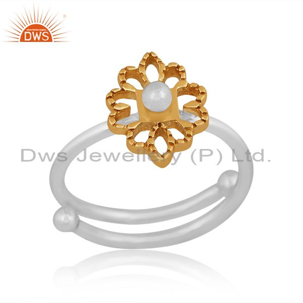 Gold On Fine 925 Sterling Silver Handmade Ethnic Design Ring