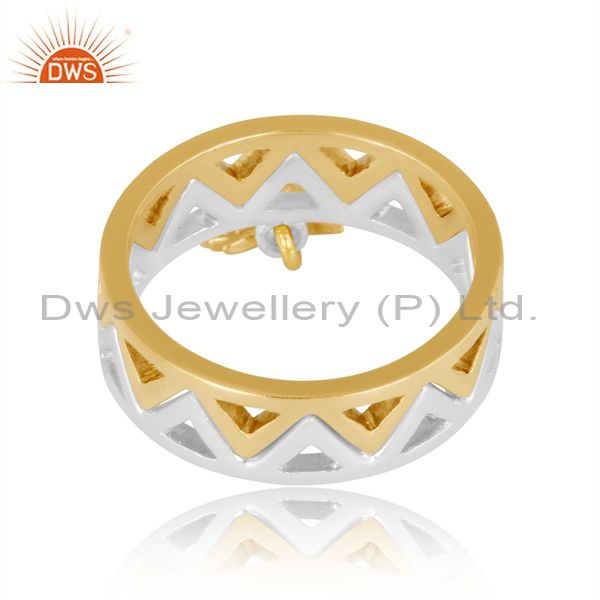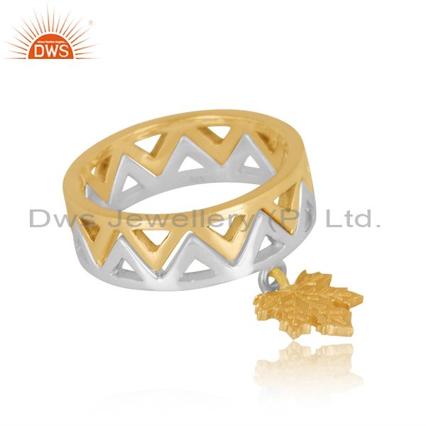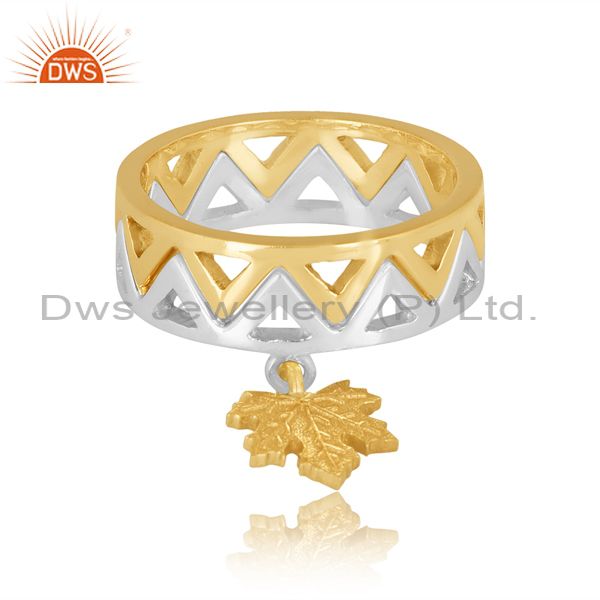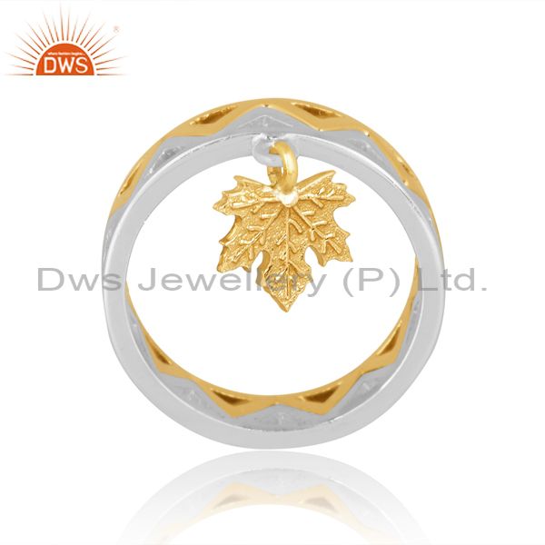Gold On Fine Silver Autumn Leaf Charm Set Band Style Ring
