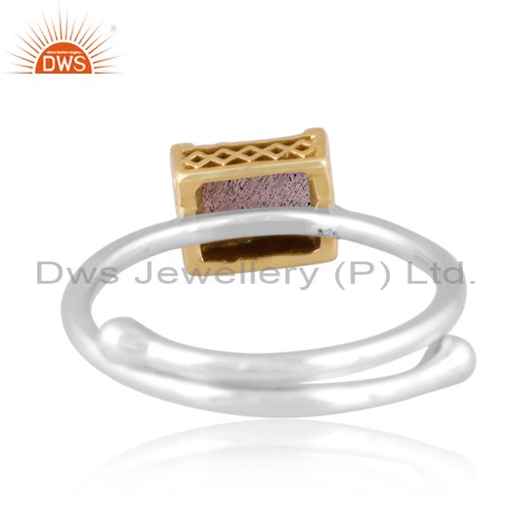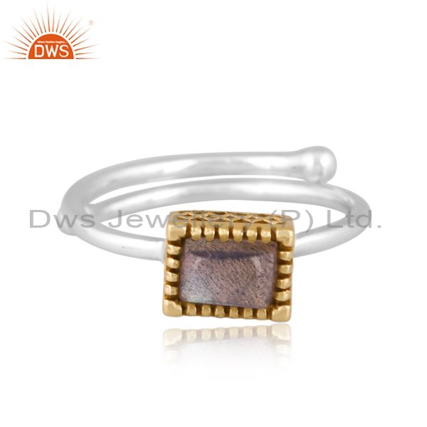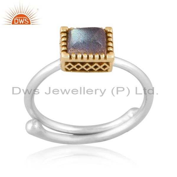Gold On Fine Silver Square Cut Labradorite Set Classic Ring