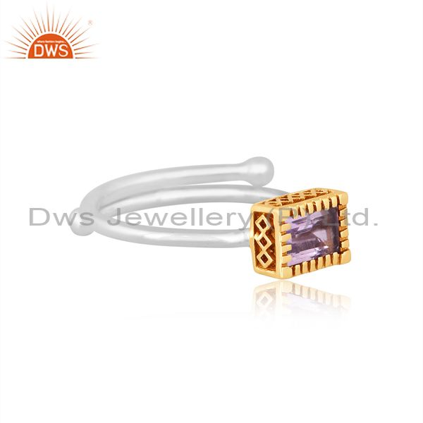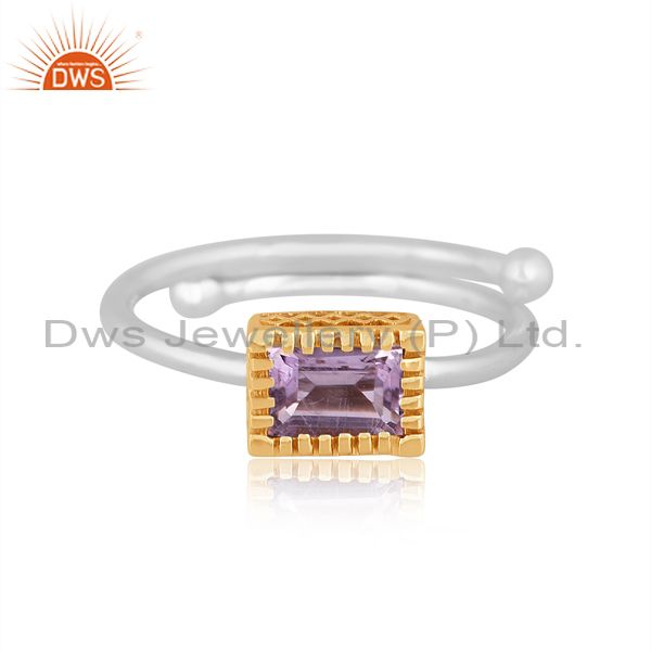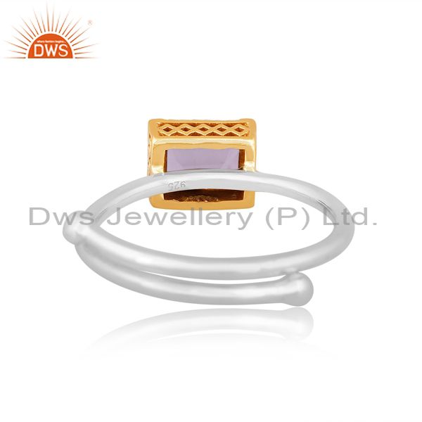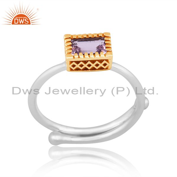 Gold On Fine Silver Square Cut Pink Amethyst Classic Ring