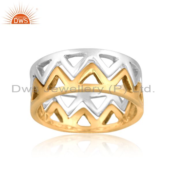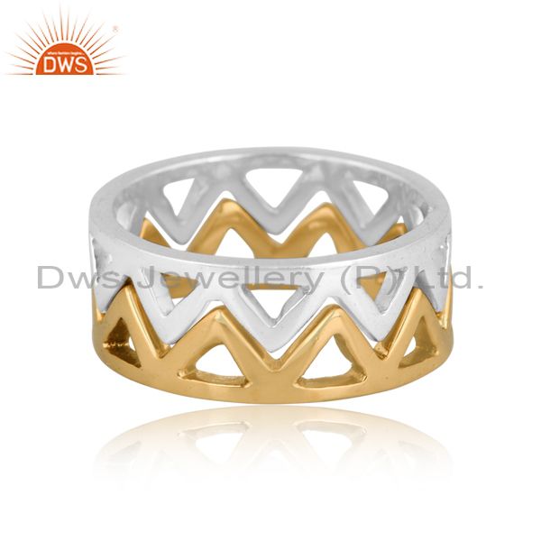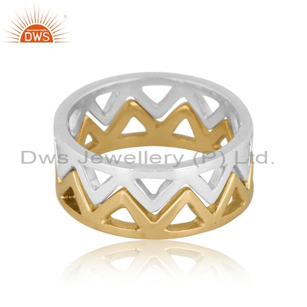 Gold On Fine Sterling Silver Handmade Band Style Carved Ring