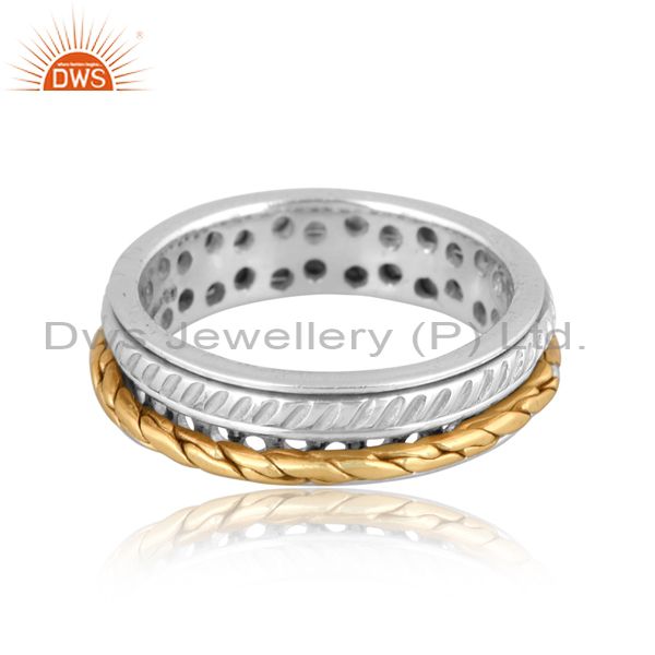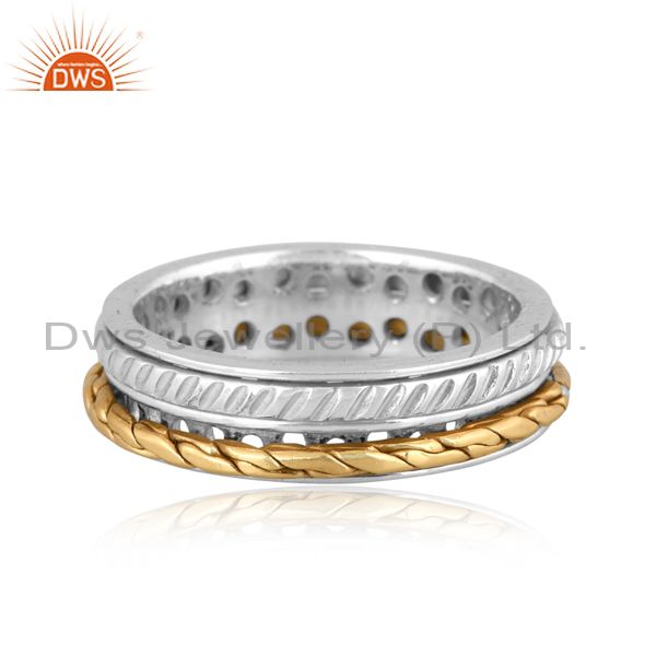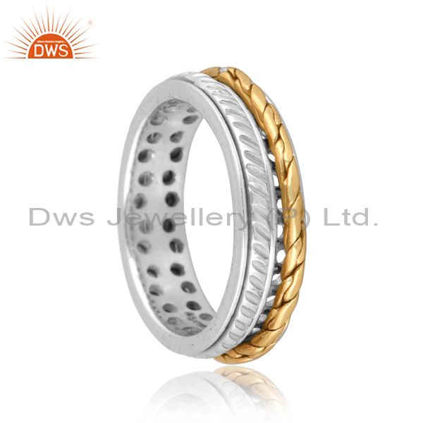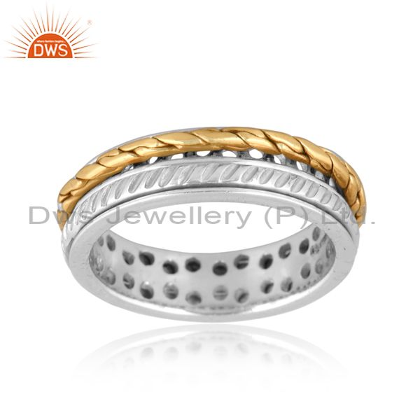 Gold On Fine Sterling Silver Handmade Carved Band Style Ring
