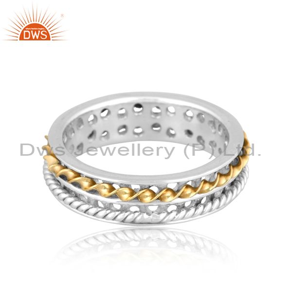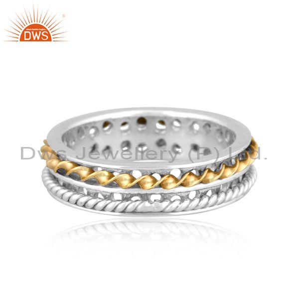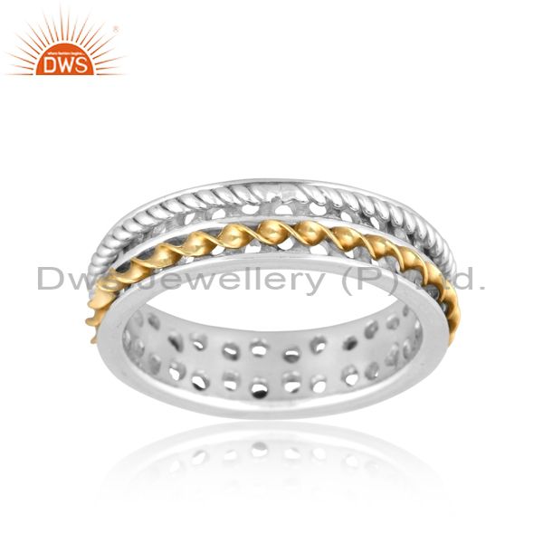 Gold On Fine Sterling Silver Handmade Textured Fancy Ring