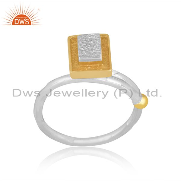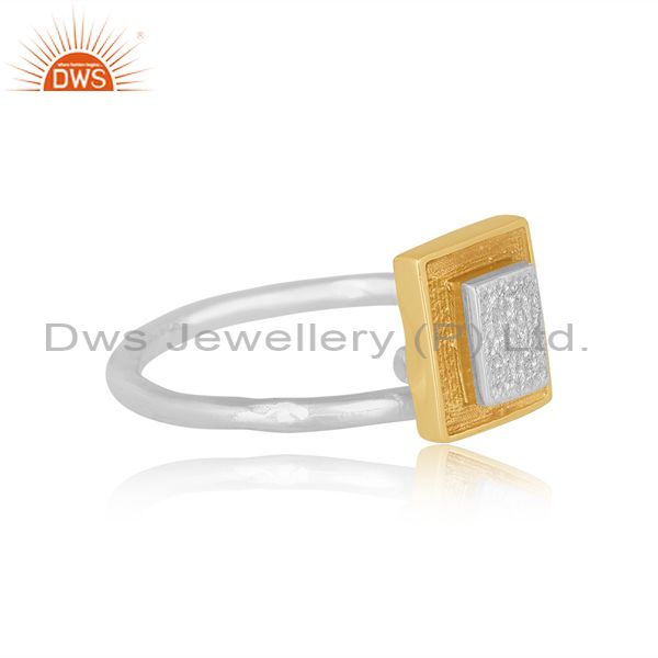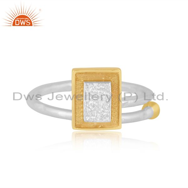 Gold On Fine Sterling Silver Rectangular Charm Classic Ring