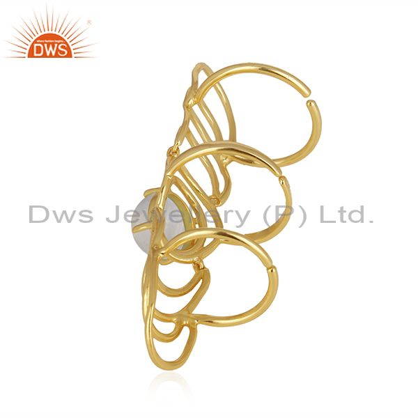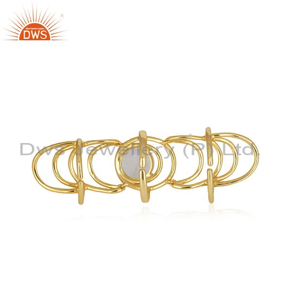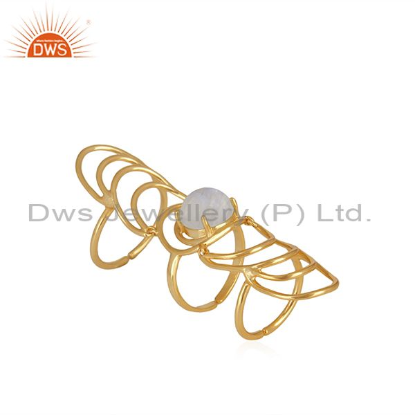 Gold Plated 925 Fine Silver Rainbow Moonstone Knuckle Ring Wholesale