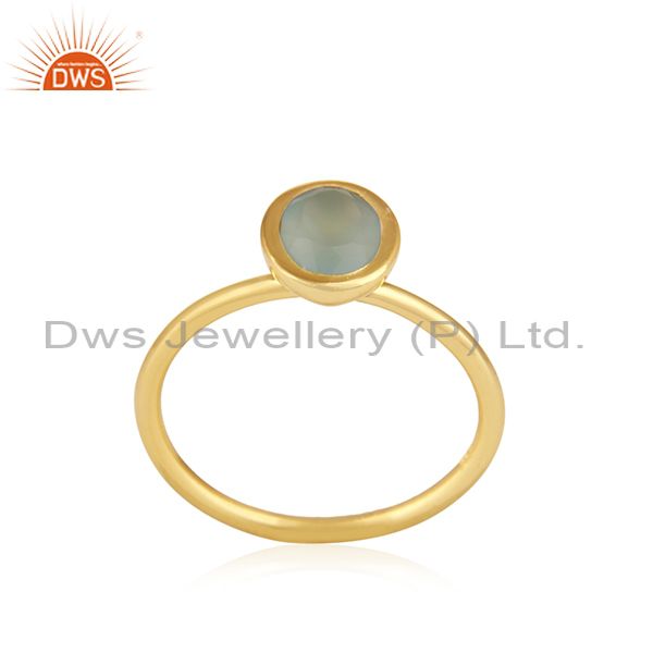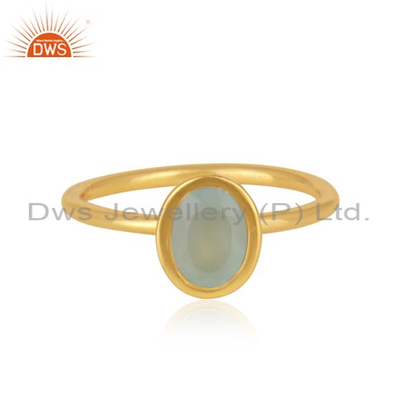Gold Plated 925 Silver Aqua Chalcedony Gemstone Rings Manufacturer
