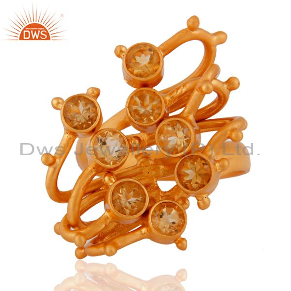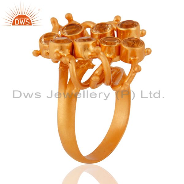 Gold Plated 925 Sterling Silver Citrine Gemstone Designer Women Fashion Ring