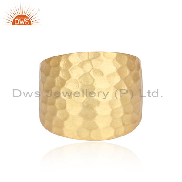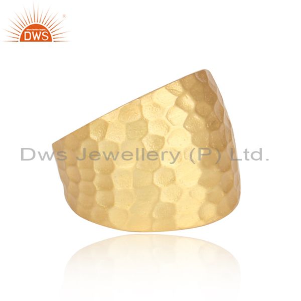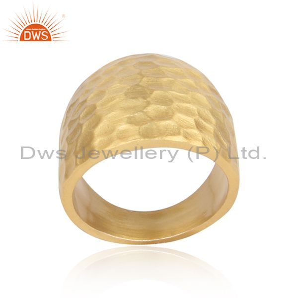 Gold Plated 925 Sterling Silver Hammered Bold Statement Ring