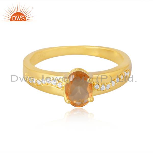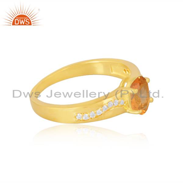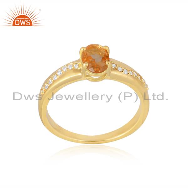 Gold-Plated Citrine Ring - Silver White Beautiful Accent