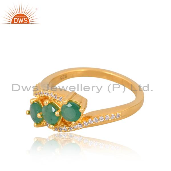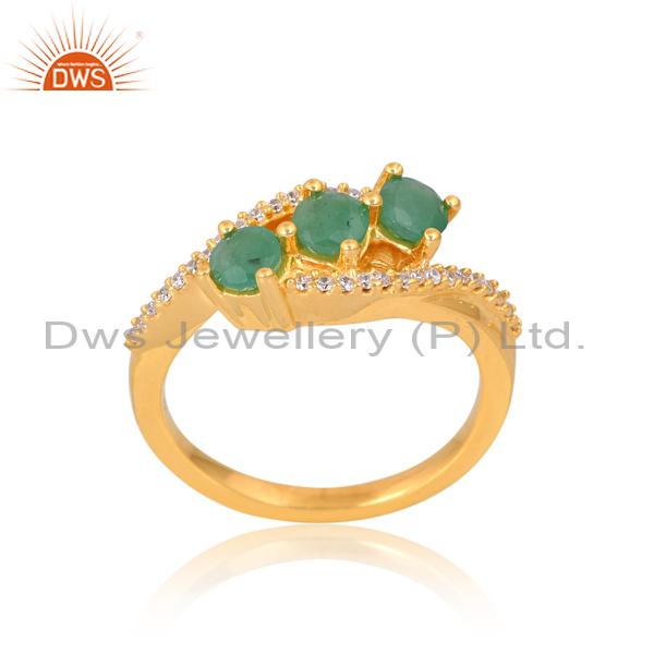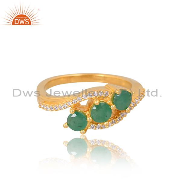 Gold Plated Emerald & Cubic Zirconia Engagement Ring