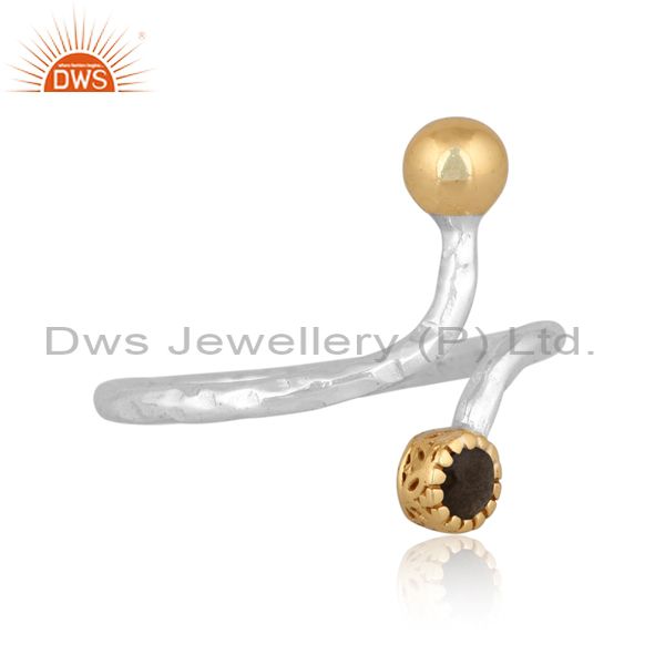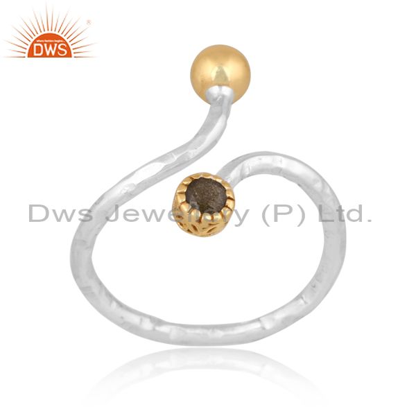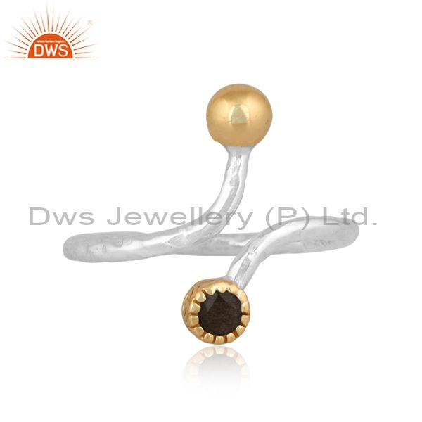 Gold Sheen Obsidian Set Gold On 925 Silver Handhammered Ring