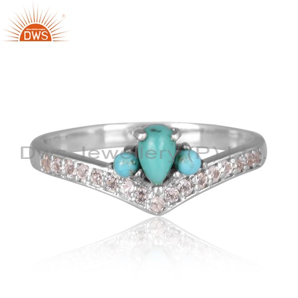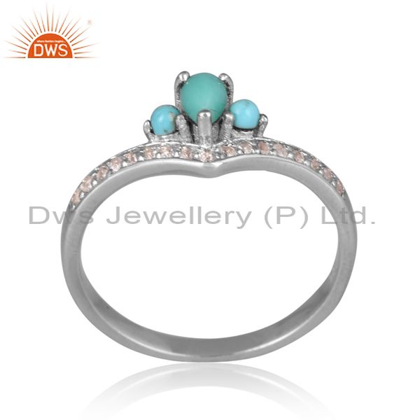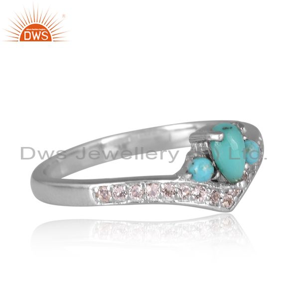 Gold Silver Ring With Arizona Turquoise & White Topaz
