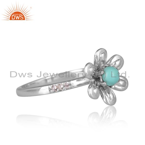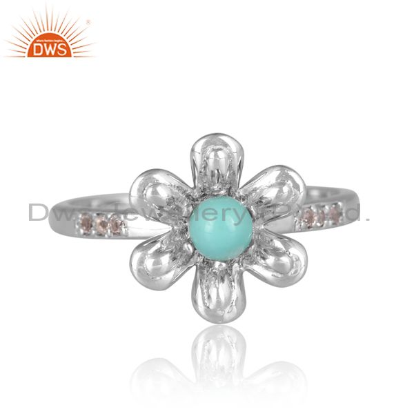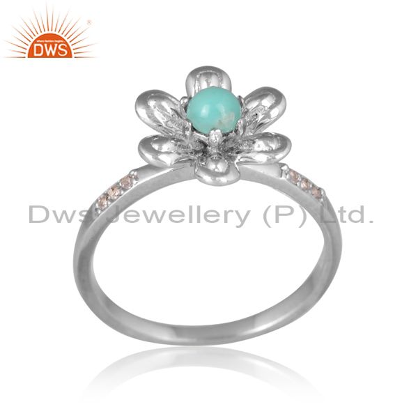 Gold Silver Ring With White Topaz & Arizona Turquoise