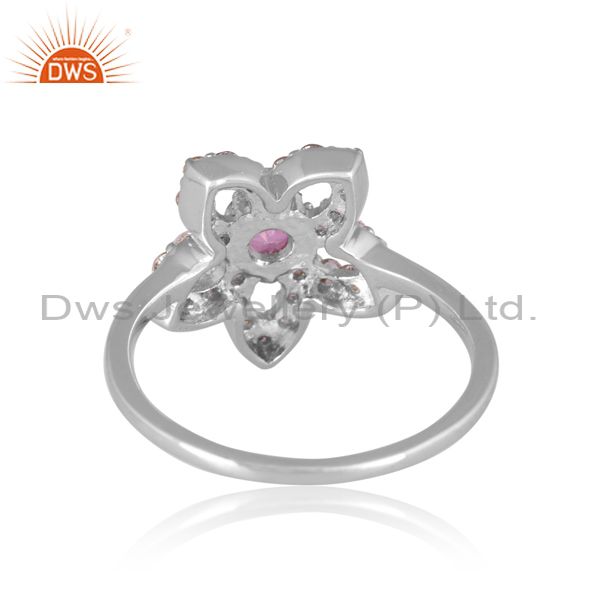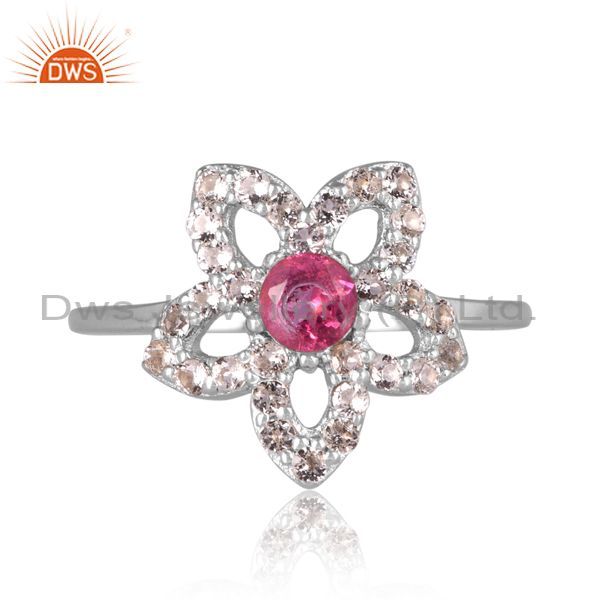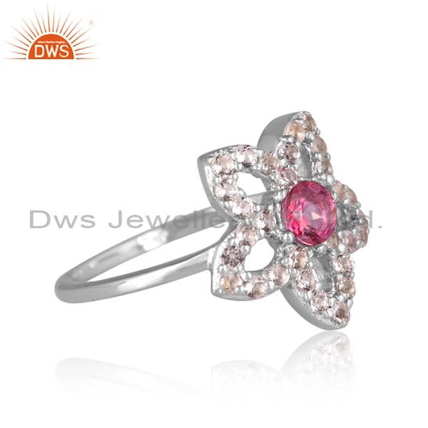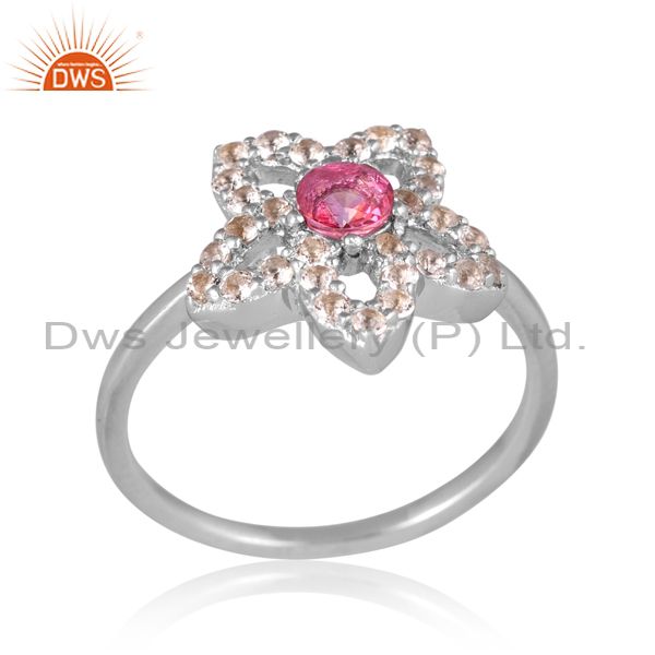 Gold Sterling Silver Ring With Pink & White Topaz Round Cut