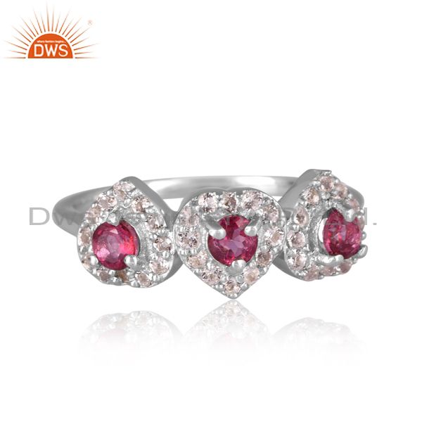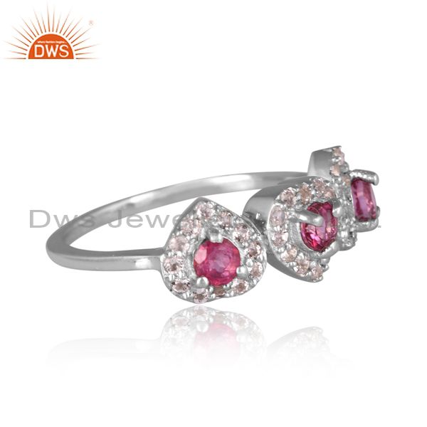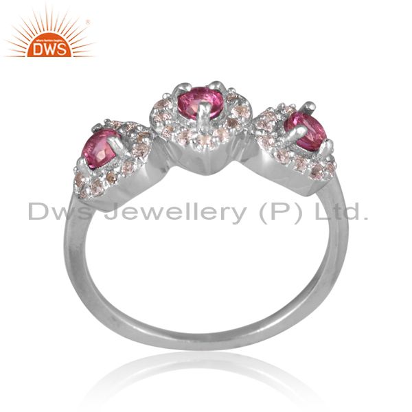 Gold Sterling Silver Ring With Round Cur Pink & White Topaz