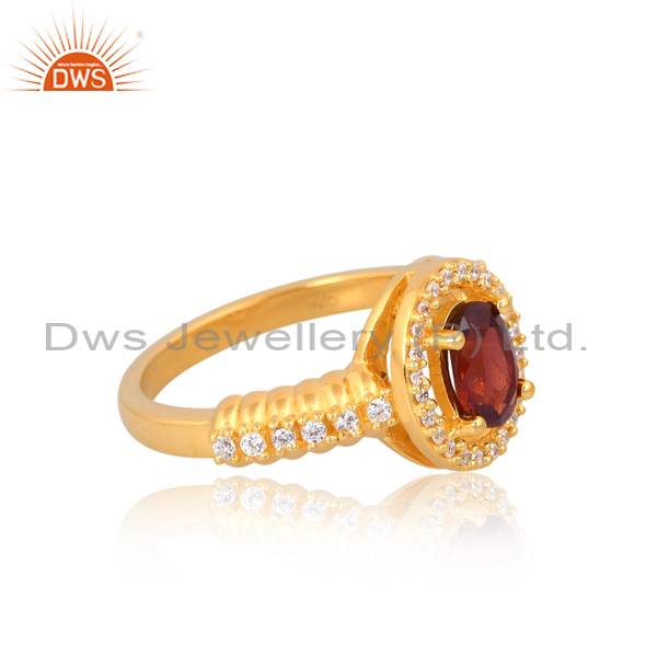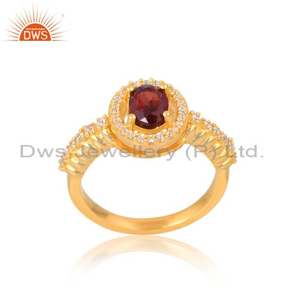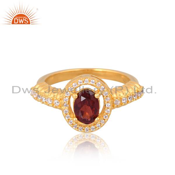 Gold Vermeil Ring: Garnet & Cubic Zirconia Gemstones