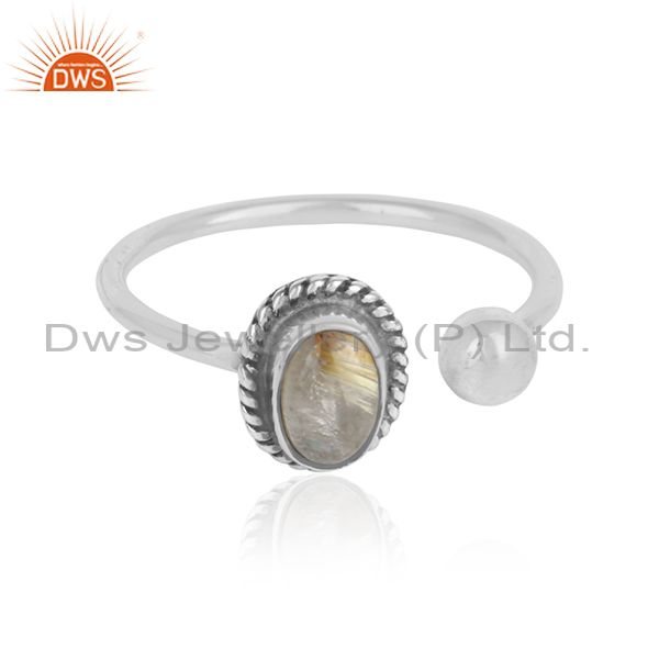 Golden Rutile Gemstone Designer Oxidized Silver 925 Ring Jewelry