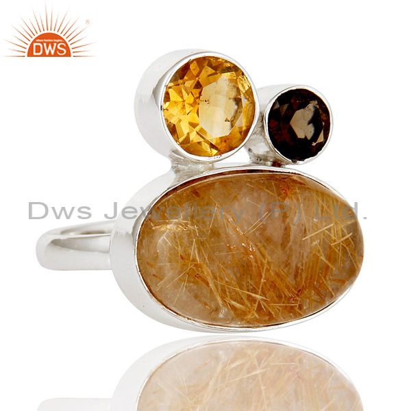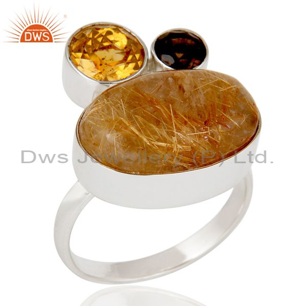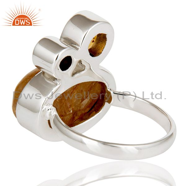 Golden Rutile,Garnet And Citrine 925 Sterling Silver Statement Ring