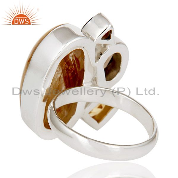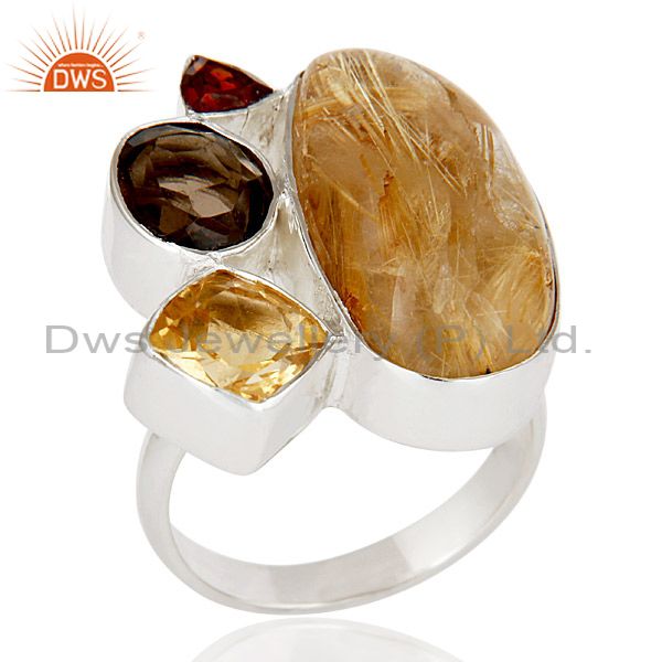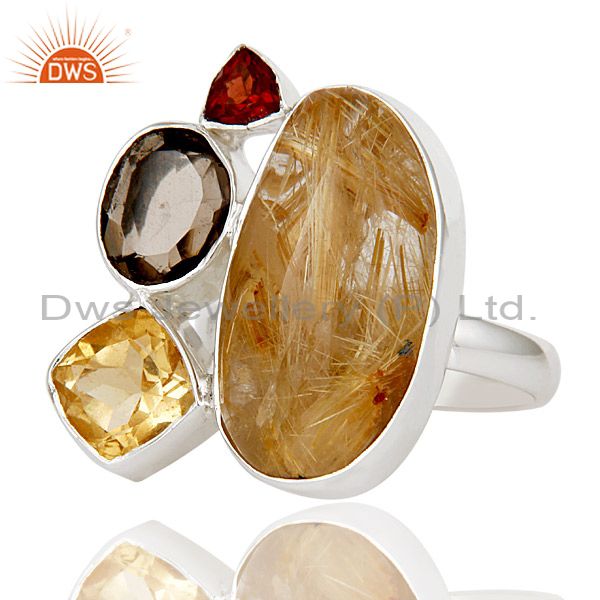 Golden Rutile,Garnet,Citrine And Smokey Topaz Sterling Silver Statement Rsing