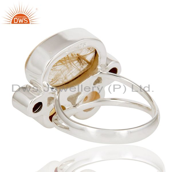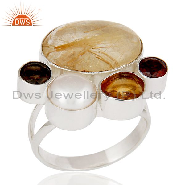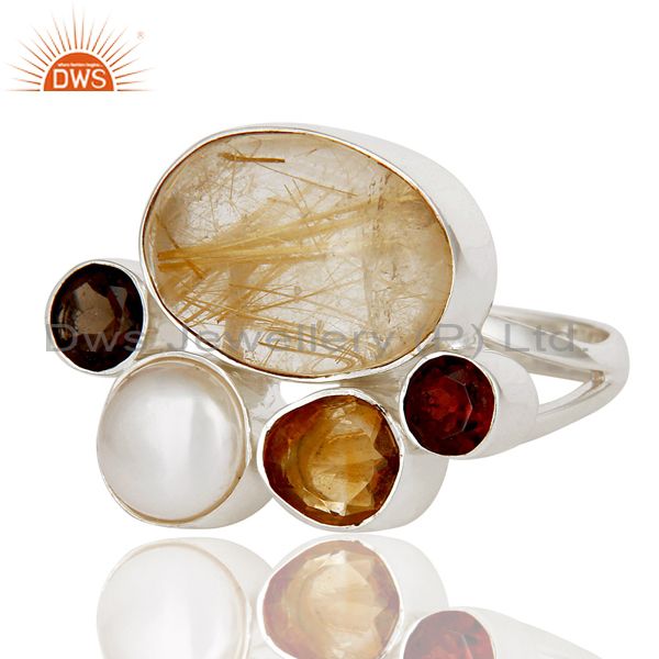 Golden Rutile,Garnet,Pearl,Citrine And Smoky Topaz 925 Sterling Silver Ring