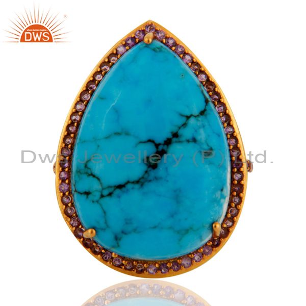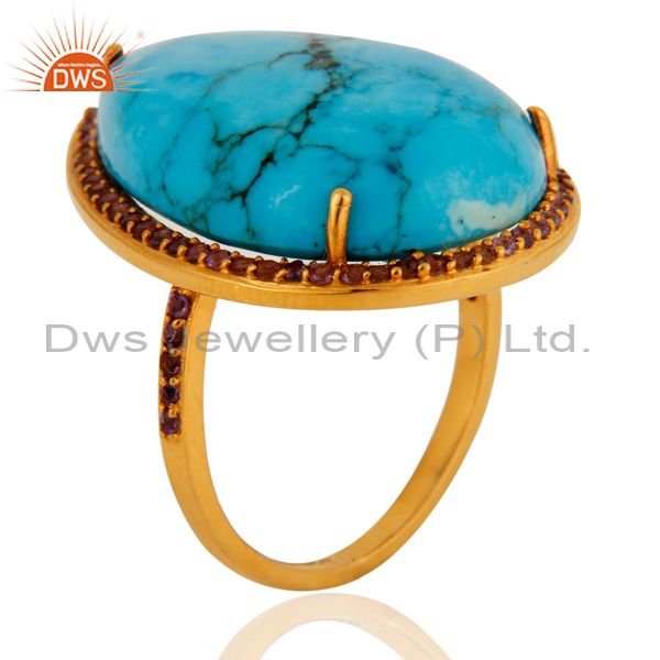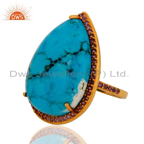 Gorgeous 9K Solid Yellow Gold Turquoise & Amethyst Wedding Day Ring For Womens