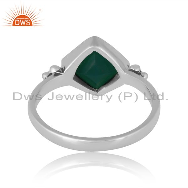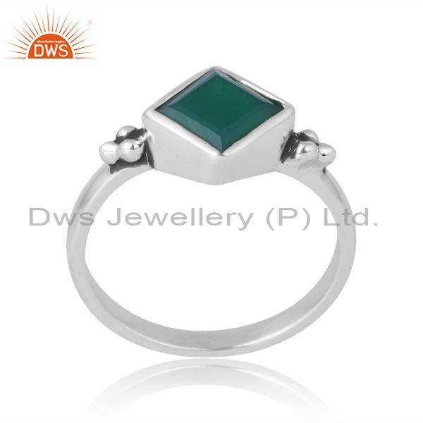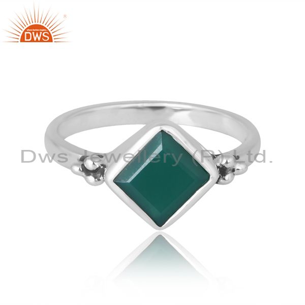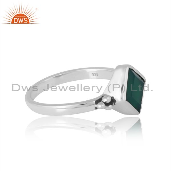 Gorgeous Hexagon Green Onyx Square Cut Band For Women Silver