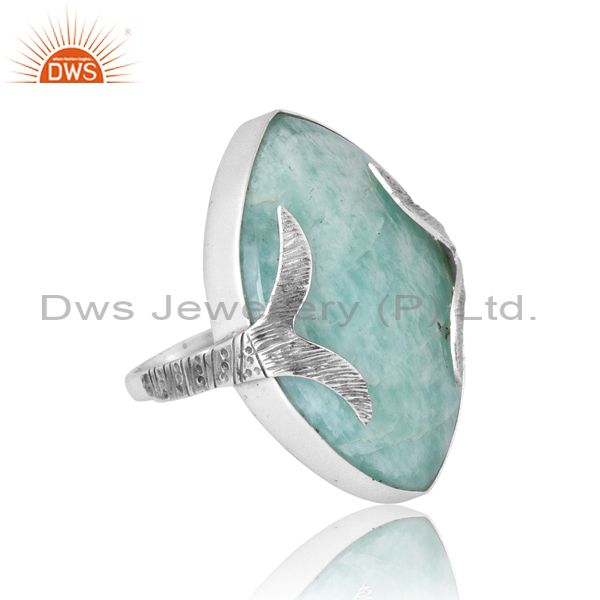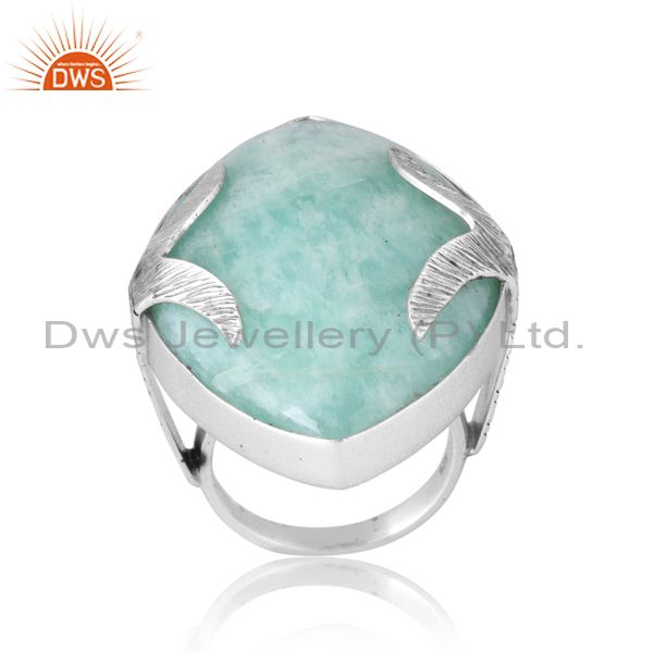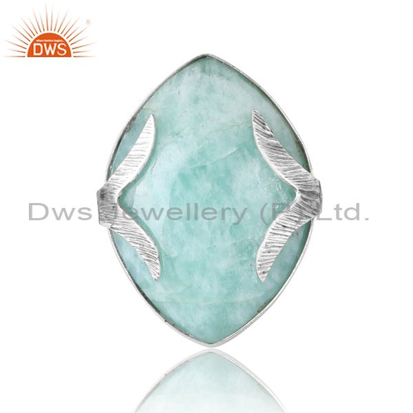 Gorgeous Oxidized Pattern Ring With Amazonite Marquise Cut